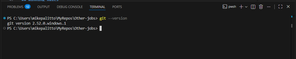 2) Confirm Git is available inside VS Code